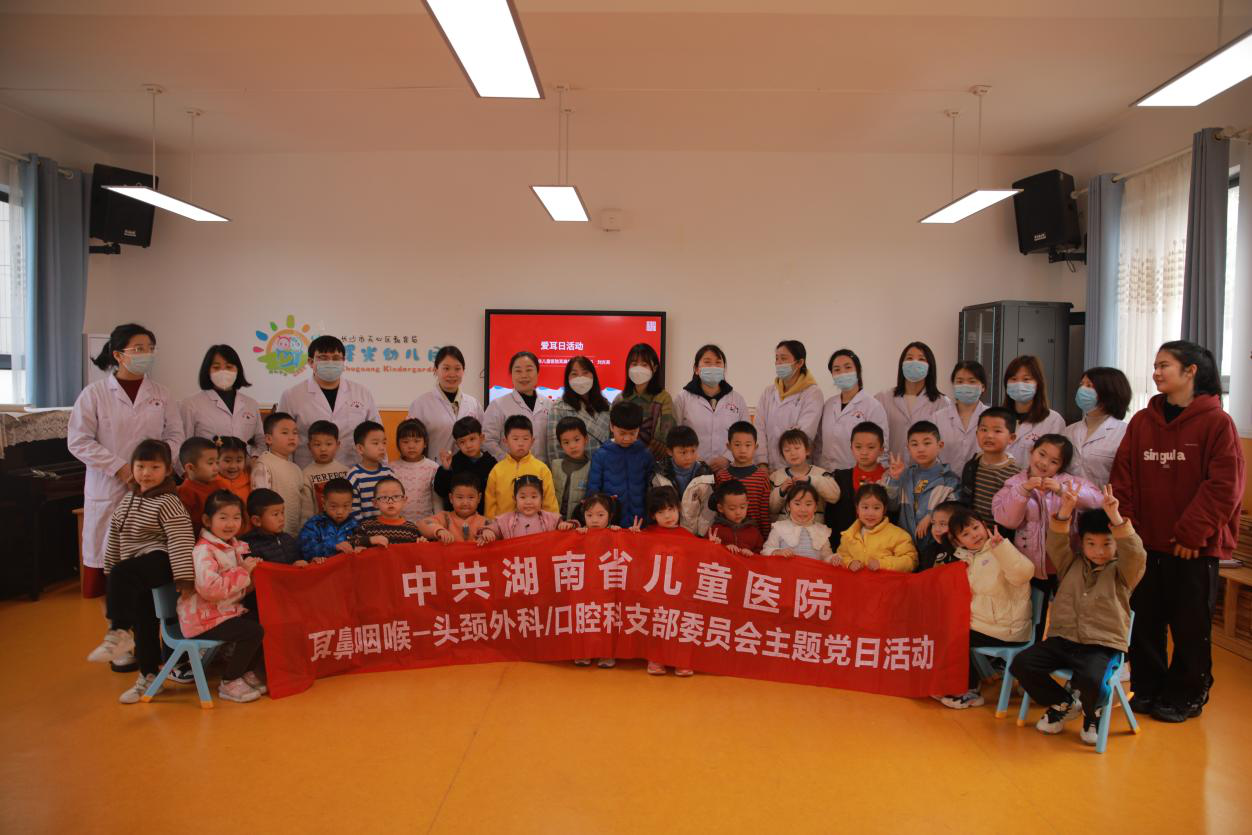 2023年3月3日是第24个“全国爱耳日”。为了提高孩子们的耳部防护意识,守护耳健康,早发现早干预耳部疾病,湖南省儿童医院耳鼻咽喉-头颈外科/口腔科党支部于3月2日上午在曙光幼儿园开展了“爱耳日”义诊主题党日活动。