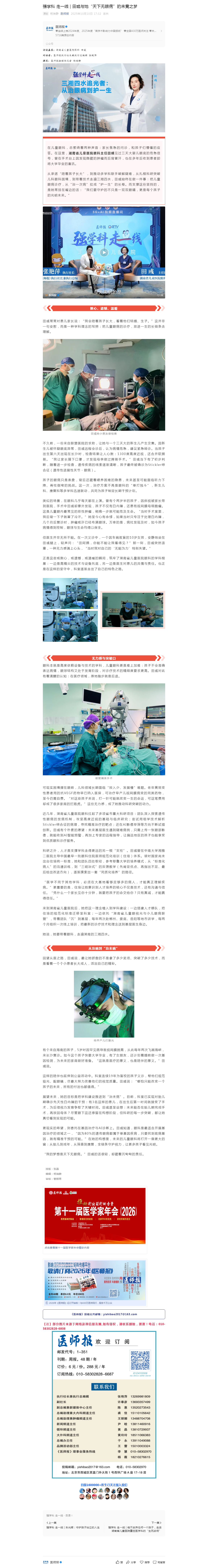 展望未来,她的目标是把学科建设推进到“治未病”。目前,科室已实现对胎儿期确诊先天性白内障的干预:有3名这样的患儿,在出生后第一时间就接受了手术,为后续视力发育争取了关键时间。田彧甚至设想:未来能否在胎儿期完成手术,再放回母体?尽管眼下这还停留在构想阶段,但科研的每一步突破,都让她真切看到实现的可能。
