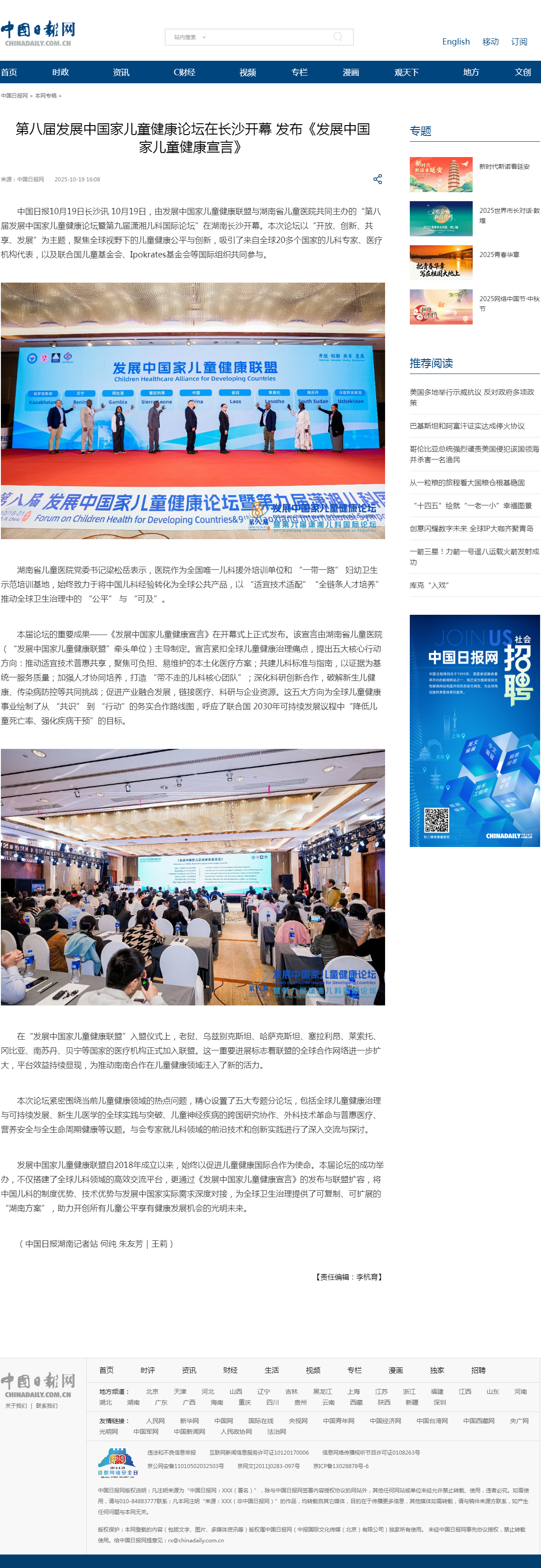 发展中国家儿童健康联盟自2018年成立以来,始终以促进儿童健康国际合作为使命。本届论坛的成功举办,不仅搭建了全球儿科领域的高效交流平台,更通过《发展中国家儿童健康宣言》的发布与联盟扩容,将中国儿科的制度优势、技术优势与发展中国家实际需求深度对接,为全球卫生治理提供了可复制、可扩展的 “湖南方案”,助力开创所有儿童公平享有健康发展机会的光明未来。