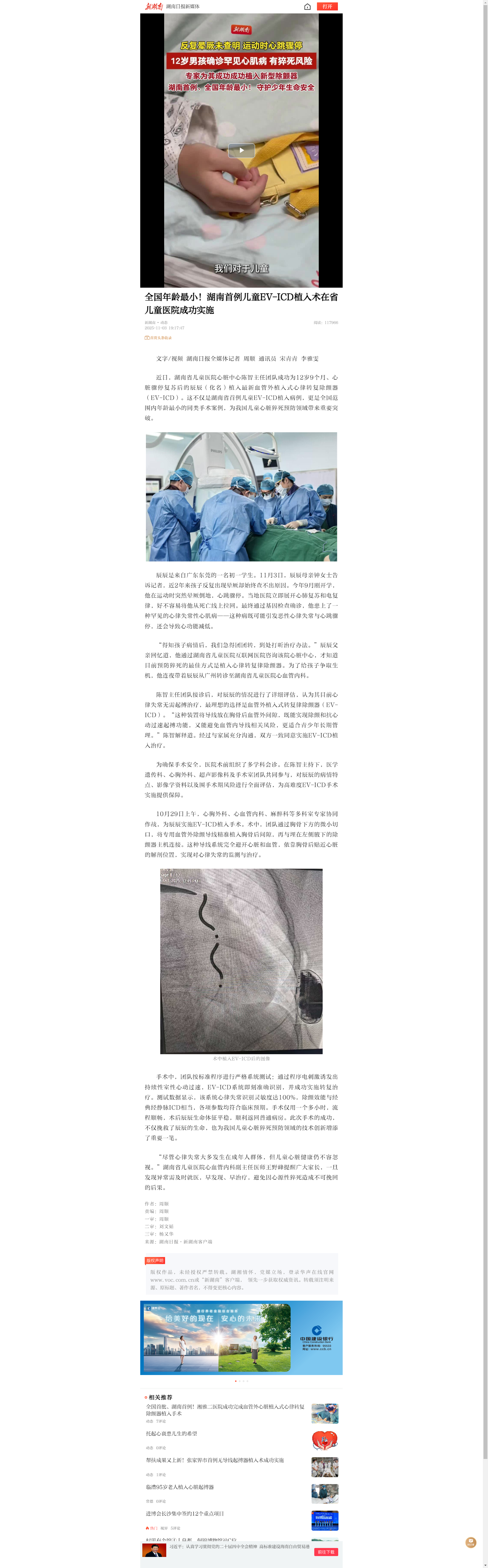 近日,湖南省儿童医院心脏中心陈智主任团队成功为12岁9个月、心脏骤停复苏后的辰辰(化名)植入最新血管外植入式心律转复除颤器(EV-ICD)。这不仅是湖南省首例儿童EV-ICD植入病例,更是全国范围内年龄最小的同类手术案例,为我国儿童心脏猝死预防领域带来重要突破。