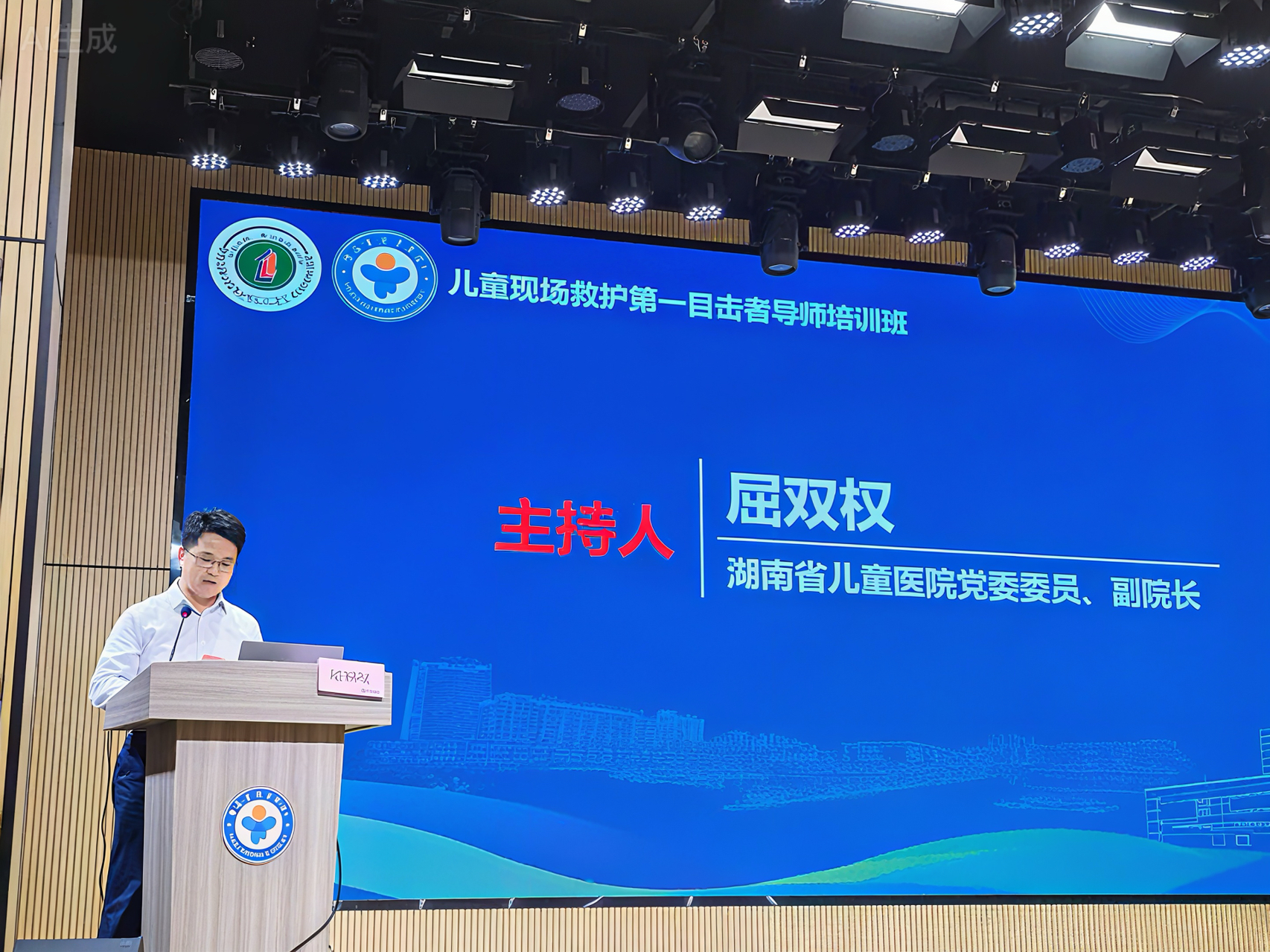 湖南省儿童医院副院长屈双权主持开班典礼。他代表湖南省儿童医院欢迎全省各地远道而来的学员,医院今年牵头首次发起“儿童现场救护第一目击者行动”推广全民急救科普,从省医行为上升到全省行动,不断实践将影响力蔓延至全国,发挥了引领示范作用,是公立医院有责任担当的生动体现。