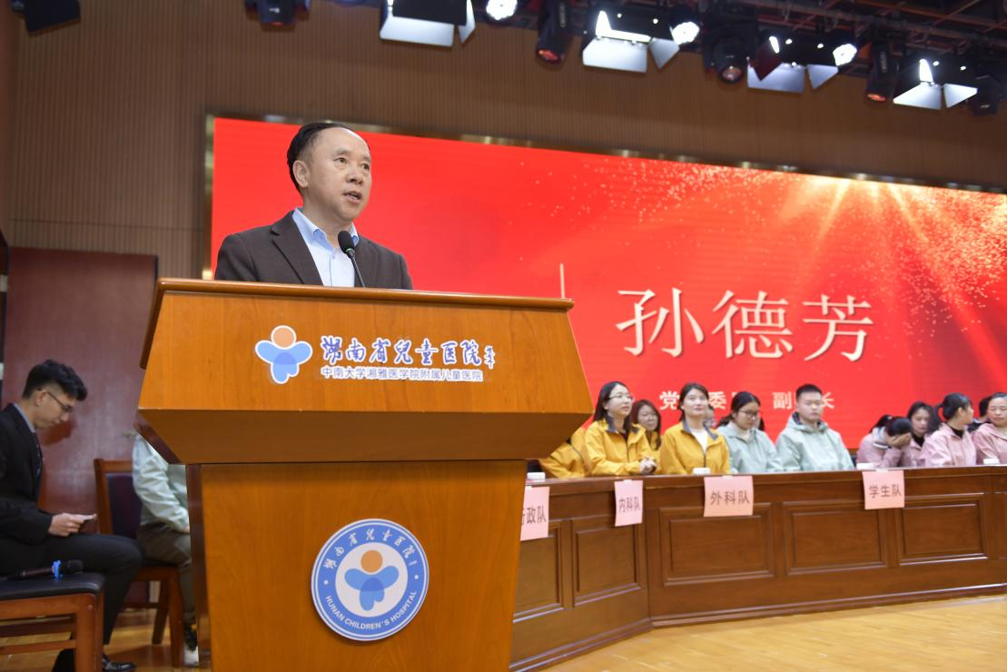 医院党委成员,副院长孙德芳致辞,他强调“消防安全,人人有责,人人都是安全员!每一位在岗的医生、护士、行政和后勤人员,都必须成为患儿生命安全的守护者。他希望全院职工“要常敲‘警示钟’,让安全意识‘紧’起来;要筑牢‘防火墙’,让安全措施‘实’起来;要练就‘真本领’,让应急能力‘强’起来”。