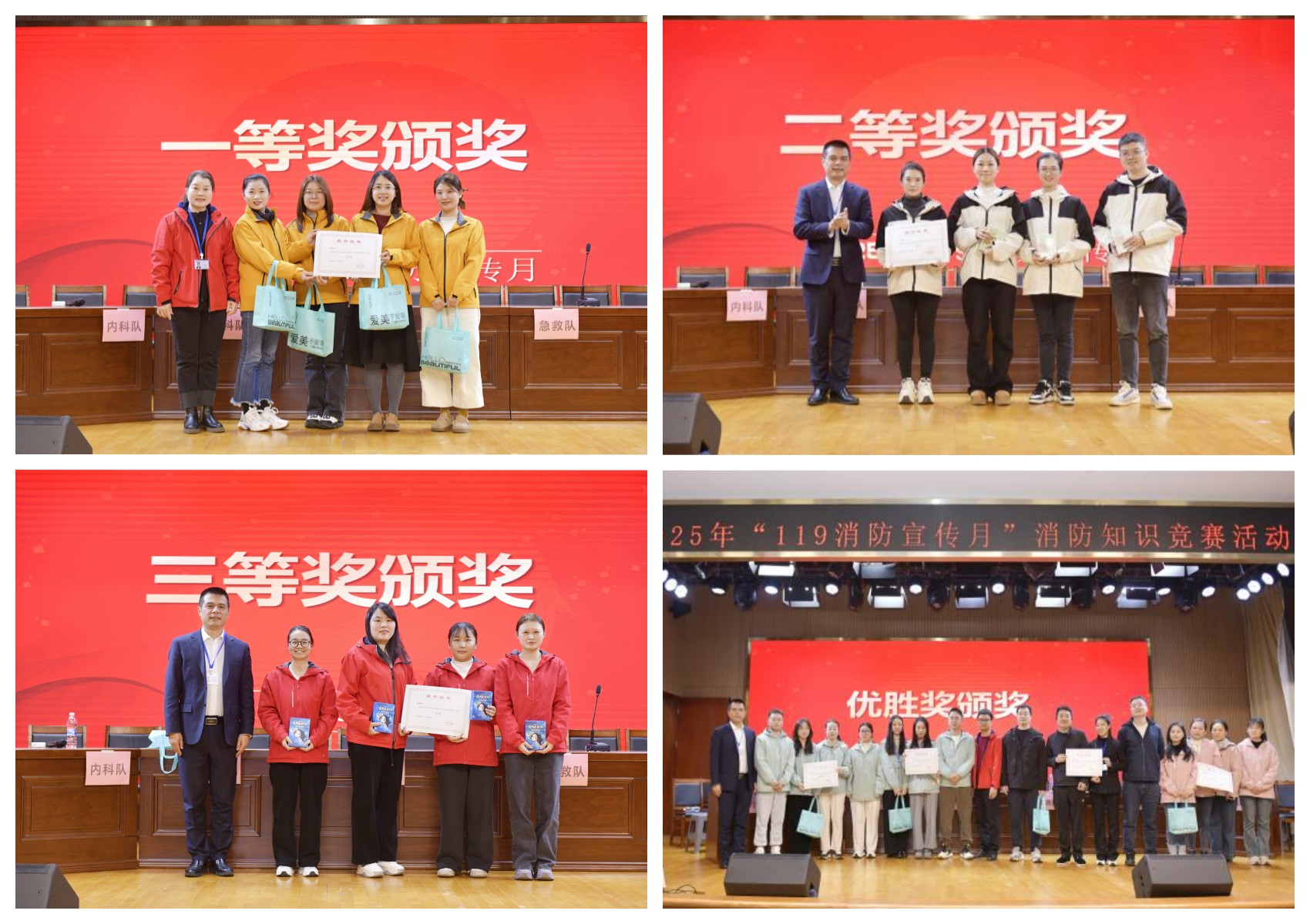 来自内科、外科、行政、后勤、急救、门诊、学生七支代表队展开激烈角逐。经过两小时紧张比拼,外科代表队凭借稳定发挥斩获一等奖,门诊、内科代表队分获二、三等奖。此次消防知识竞赛不仅是一场竞技比拼,更是一堂生动的全民安全教育课。通过“以赛促学、以学促行”,为建设平安医院注入坚实力量。