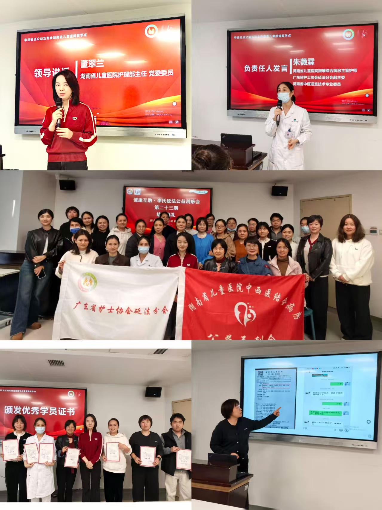 湖南省儿童医院自今年上半年成为广东省护士协会砭法分会李氏砭法公益互刮会教学点以来,已成功举办二期,累计培养了大批中医砭法爱好者与从业者。未来,医院将继续秉持公益初心,为中医文化的传承与普及搭建更广阔的平台。