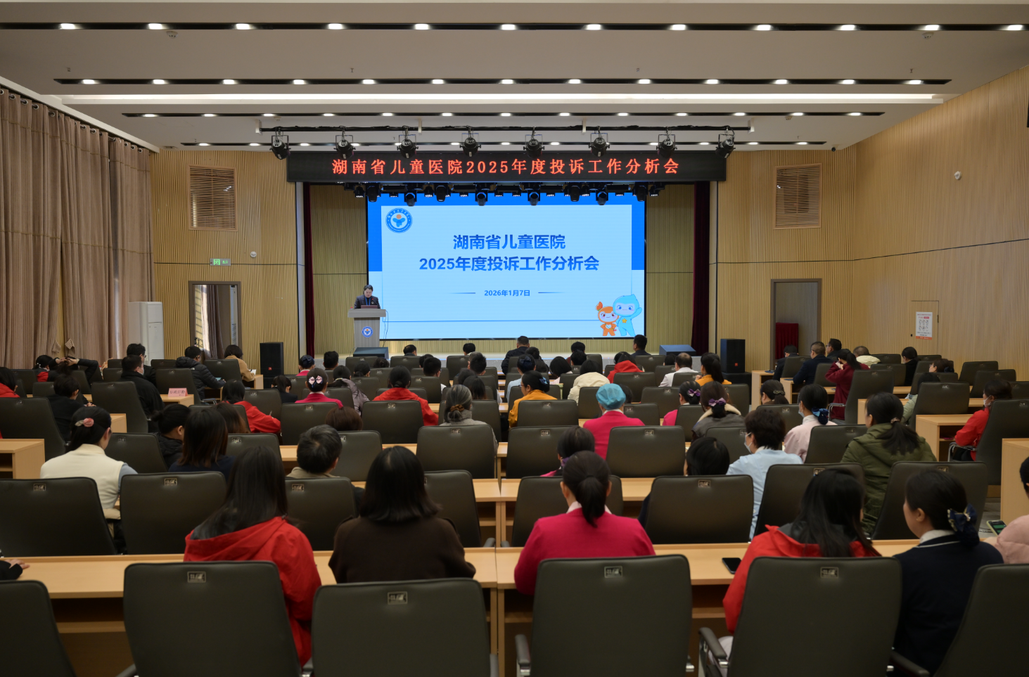 为深入贯彻“以患者为中心”的服务理念,全面梳理2025年度医院投诉管理工作成效与不足,精准剖析问题根源,持续优化医疗服务质量,筑牢医疗安全防线,1月7日下午,医院召开2025年度投诉工作分析会。党委书记梁松岳,党委副书记、院长肖政辉等全体在家院领导,以及临床医技科室负责人、投诉联络员、行政职能部门负责人等100余人参会。党委委员、副院长谢鑑辉主持会议。