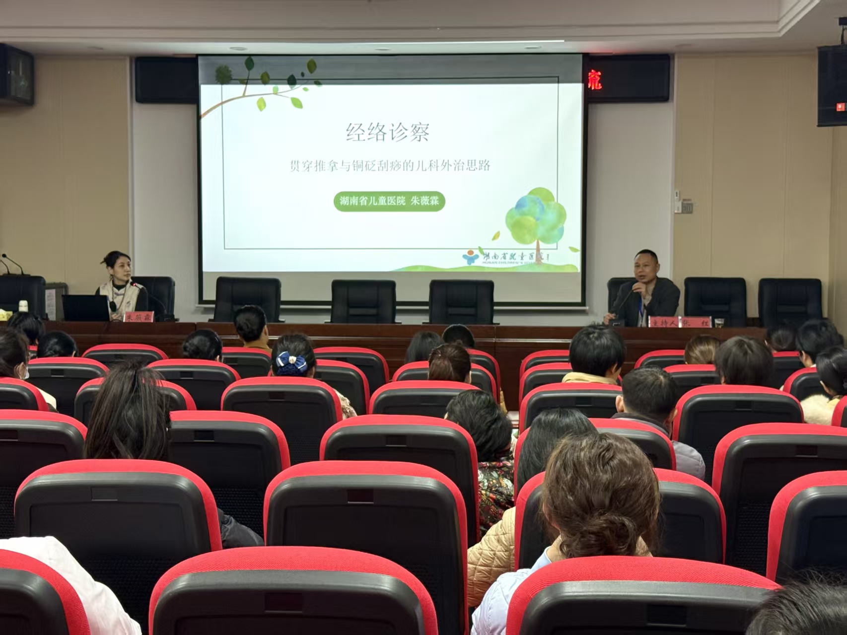 我院中医护理技术骨干、疑难综合病房主管护师朱薇霖围绕“经络诊察贯穿推拿及铜砭刮痧的儿科外治思路”开展专题授课,通过典型临床案例及实操要点展开讲解,全院临床医护人员认真聆听、积极互动,现场学习氛围浓厚。