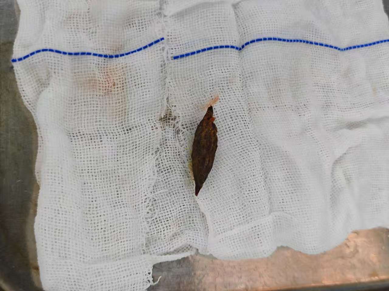 近日,1岁10月男孩俊俊,因突然出现呕吐、发热来湖南省儿童医院就诊,普外二科黄召副教授查看俊俊后完善了相关检查,考虑消化道穿孔,随后紧急进行了手术治疗,术中发现罪魁祸首竟然是一枚尖锐的枣核,已经穿透了肠壁造成严重的腹腔感染,如果不及时处理,病情会进一步发展恶化。
