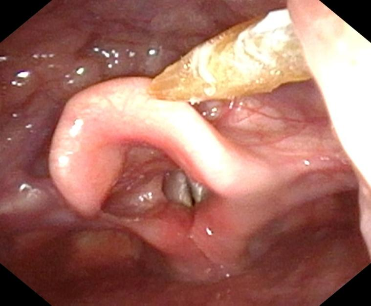 家住长沙9岁的方方(化名)和爸爸妈妈一起去奶奶家聚餐,奶奶一周没见孙子了,热情地拿出早早就准备好的牛肉干。面对美味的牛肉干,方方狼吞虎咽地吃起来,还一边和家里人高兴说说笑笑笑。突然,他摸着脖子说痛,并开始呕吐,吓坏了一旁的长辈们,奶奶意意识到他可能是被牛肉干卡到了。奶奶立马学着之前看到的“土方子”,拿米饭和醋让方方吞咽下去,但是“土方法”毫无效果,奶奶又拿来粽子他直接吞咽。而这时方方的症状没有缓解,反而越来越痛。于是爸妈带他到湖南省儿童医院耳鼻喉头颈外科就诊,接诊医师谢江了解情况后,立马为孩子进行了纤维喉镜电子镜检查,检查显示:右侧扁桃体下级可见黄色条块状物嵌顿。医生当即为方方取出了这个折磨了他半天的牛肉干。