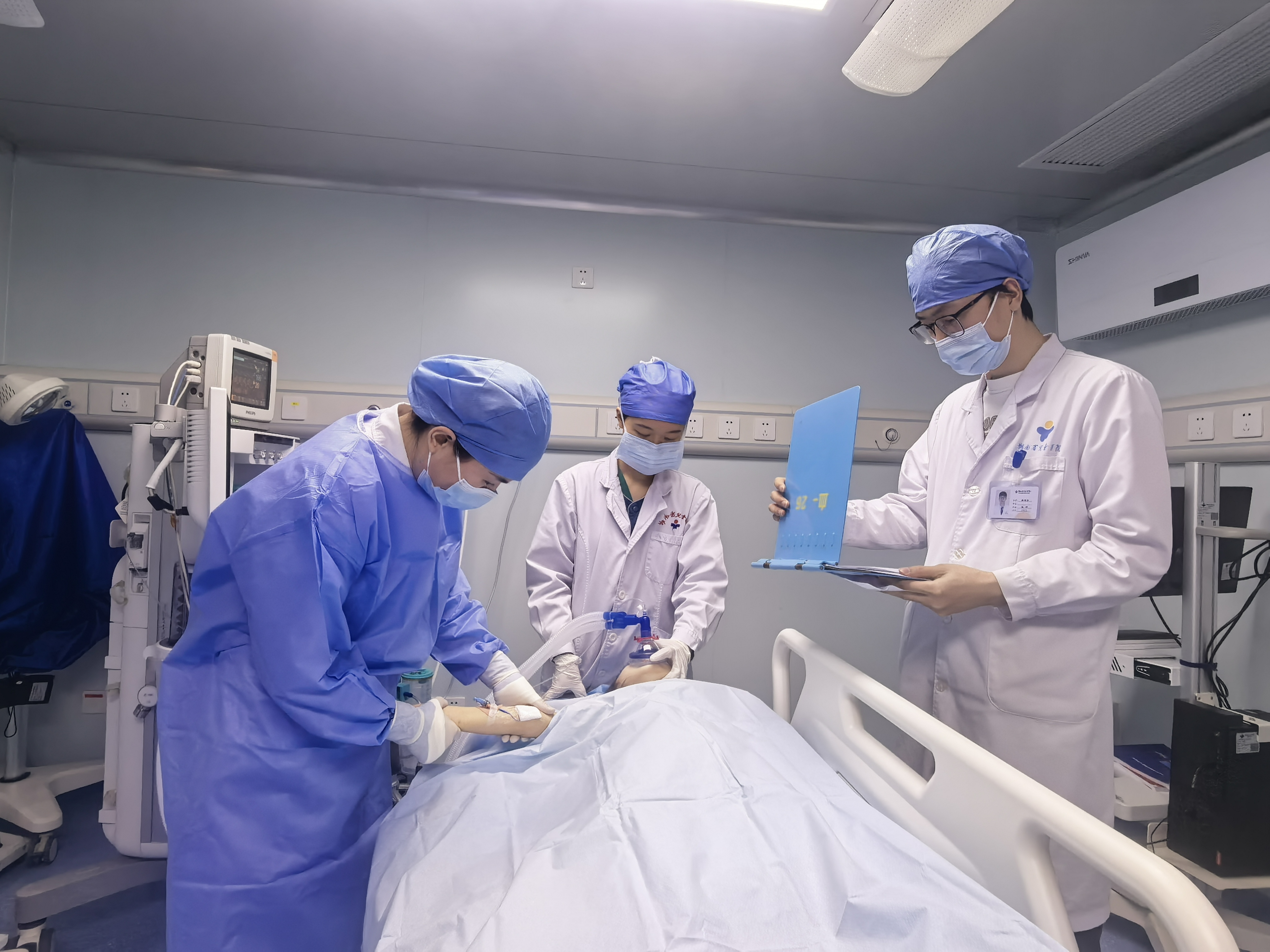 面对这个家庭的困境,肿瘤科医护团队经过充分评估后,联合麻醉科提出了一个创新性方案:在单次无痛镇静下,为朵朵同步完成骨髓穿刺、腰椎穿刺及PICC置管。“儿童对疼痛的耐受度低,多次操作易引发心理创伤,甚至影响后续治疗配合。一次完成,既能最大限度减少孩子的痛苦,也降低了麻醉药物的总暴露量,兼顾诊疗效果与人文关怀。”肿瘤科主任吴攀解释道。