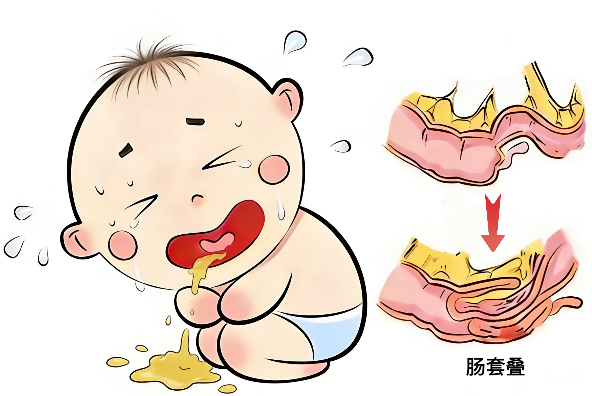 黄召副主任医师介绍,肠套叠是婴幼儿期最常见的急腹症之一,简单说就是一段肠管像“套袖”一样,套进了相邻的肠管里,起病急,早期识别是救命的关键。肠套叠典型的症状是腹痛、呕吐、血便以及腹部包块,对于家长来说,如果宝宝出现突然的、一阵一阵的哭闹或腹痛,身体蜷缩或腿部抬高,通常安抚后也不能缓解,尤其是伴有频繁呕吐或者血便时,就应该警惕肠套叠的发生了,需及时带宝宝就医。空气灌肠复位是目前治疗肠套叠的首选方法,通过肛门注入气体,利用气压将套叠的肠管复位,复位成功率高。对于复位失败,肠套叠时间过长,考虑肠道已缺血坏死,或宝宝出现肠穿孔、腹膜炎等严重并发症,那只能手术治疗。
