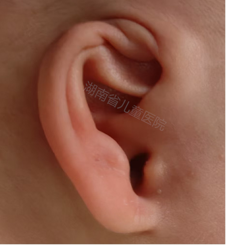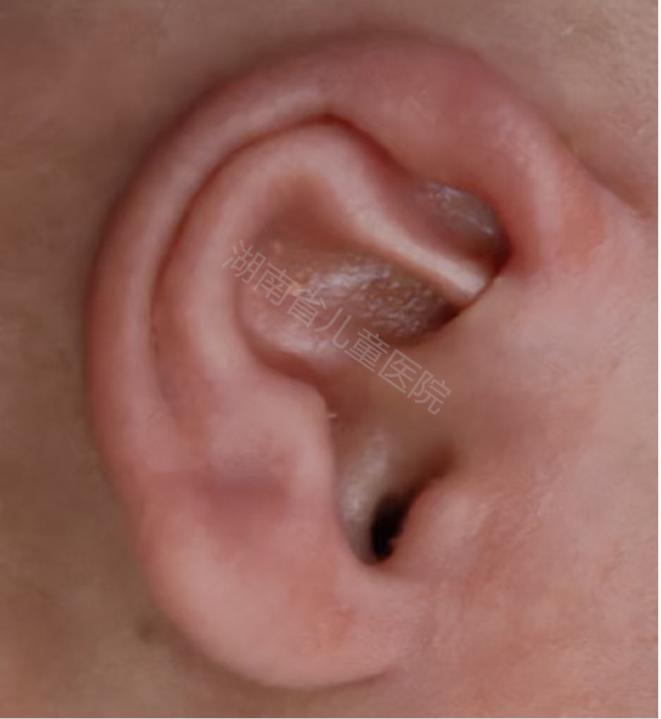 家住永州的8月龄宝宝珞珞,长得非常可爱,唯一美中不足的是出生后发现左耳廓形态发育有异常,医师诊断为隐耳(又称袋状耳),表现为耳廓软骨上端隐入颞部头皮的皮下,上方的颅耳沟变浅或消失,无明显的耳后沟;如果用手指向外牵拉耳廓上部,则能显露出耳廓的全貌,但松开后又使其回复原状。家长天真地认为自己每天扯一扯变形的耳廓,随着年龄增长可以恢复原貌。然而,随着宝宝逐渐长大,耳廓畸形的状况并未改善,家人看在眼里、急在心里,先后带着孩子前往当地多家医院以及广东部分医院就诊,却均被告知孩子月龄偏大,不建议佩戴无创矫正耳膜,建议长大后手术治疗。家长一度陷入了焦虑。最后经过多方打听,家长带着宝宝来到湖南省儿童医院耳鼻咽喉头颈外科寻求专业诊疗方案。