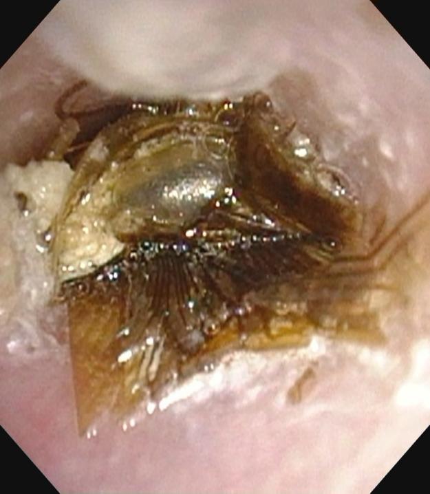 近日,湖南省儿童医院耳鼻咽喉头颈外科接诊了一名家住长沙雨花区的12岁男孩诚诚,因左耳疼痛难忍,家长带其前来就医。经过医生行耳纤维内镜检查,发现有一只昆虫紧紧吸附在孩子的鼓膜上,外耳道明显充血水肿。据家长回忆男孩在寒假期间在奶奶家居住,玩耍时,男孩突然感觉有昆虫飞进左侧耳朵,随即出现耳鸣症状,他第一时间告诉奶奶后,并未引起老人重视,当时只是短暂不适,没有做任何处理。假期结束回到长沙后,男孩偶尔会再次向父母提及耳鸣的情况,父母觉得孩子小题大做,并未带其就医检查。