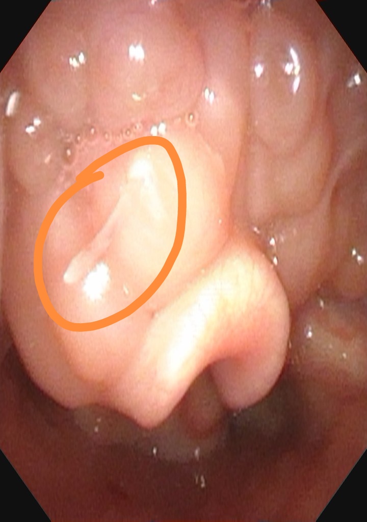 值班医生接诊后为琪琪进行电子鼻咽喉镜检查,结果显示舌根部偏左可见一鱼刺。医师在无麻下尝试用鱼骨钳取鱼刺,由于患儿咽反射敏感,配合度差,为防止二次损伤,于是在急诊全麻下为琪琪实施了咽内异物取出术,术中取出一约0.7cm长鱼刺。