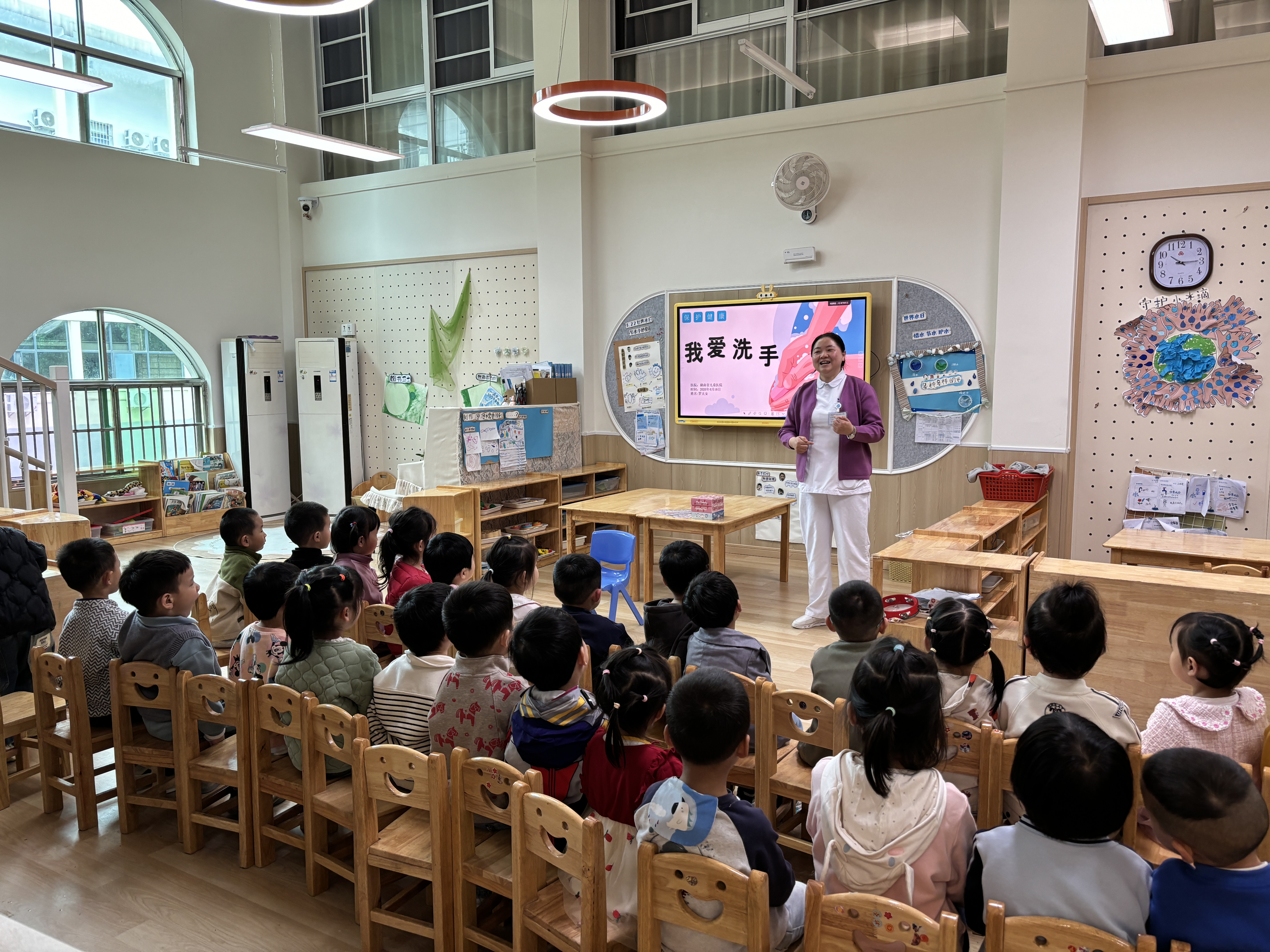 全国肿瘤防治宣传周之际,为普及儿童健康知识,树立健康生活的理念,从日常小事筑牢儿童健康防线,4月16日,湖南省儿童医院肿瘤科走进水利厅幼儿园,开展了一场以手卫生与健康饮食为核心的健康科普宣讲活动。肿瘤科医护人员化身健康科普老师,用生动有趣、通俗易懂的方式,为幼儿园的孩子们送上了一堂趣味十足的健康课,将健康生活的种子播撒在孩子们心中。