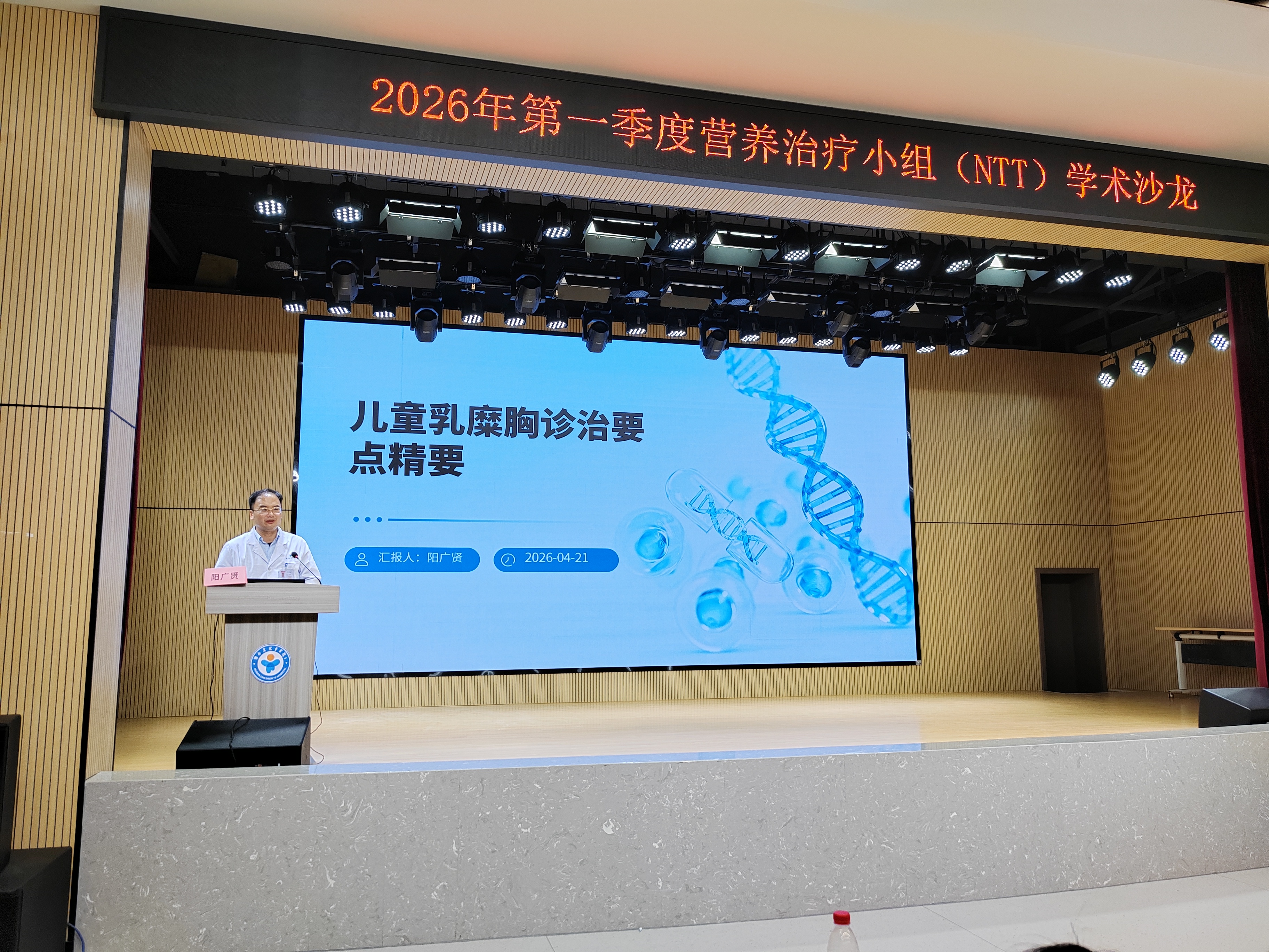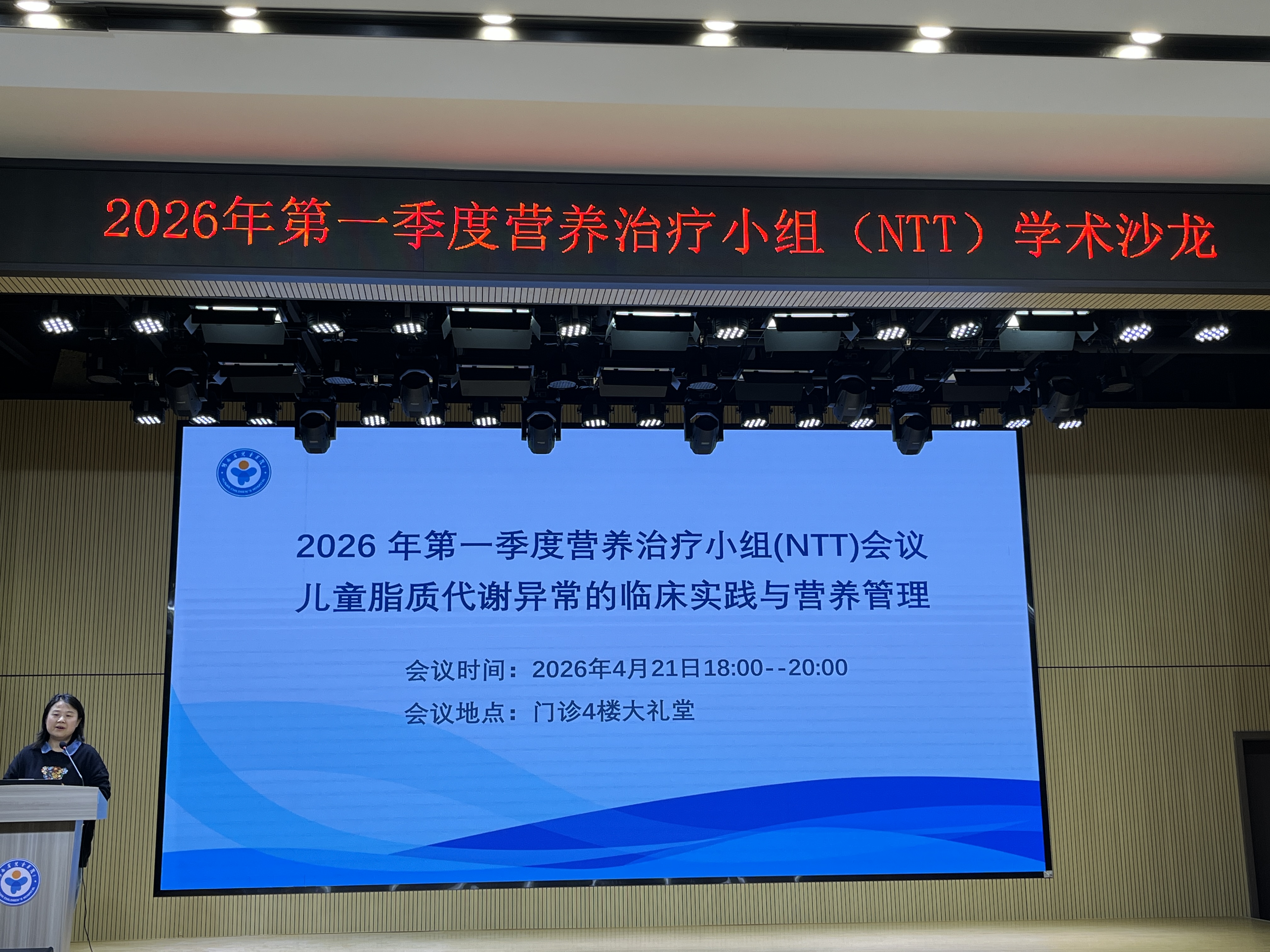 为进一步提升儿童脂质代谢异常的临床诊疗与营养管理水平,强化多学科协作,湖南省儿童医院于4月21日成功举办2026年第一次营养治疗团队(NTT)学术沙龙。会议特邀心脏中心二病区肖云彬主任医师、心脏中心一病区阳广贤主任医师作专题授课,并由消化营养科主治医师刘晨曦分享典型病例,消化营养科主任赵红梅担任主持。
