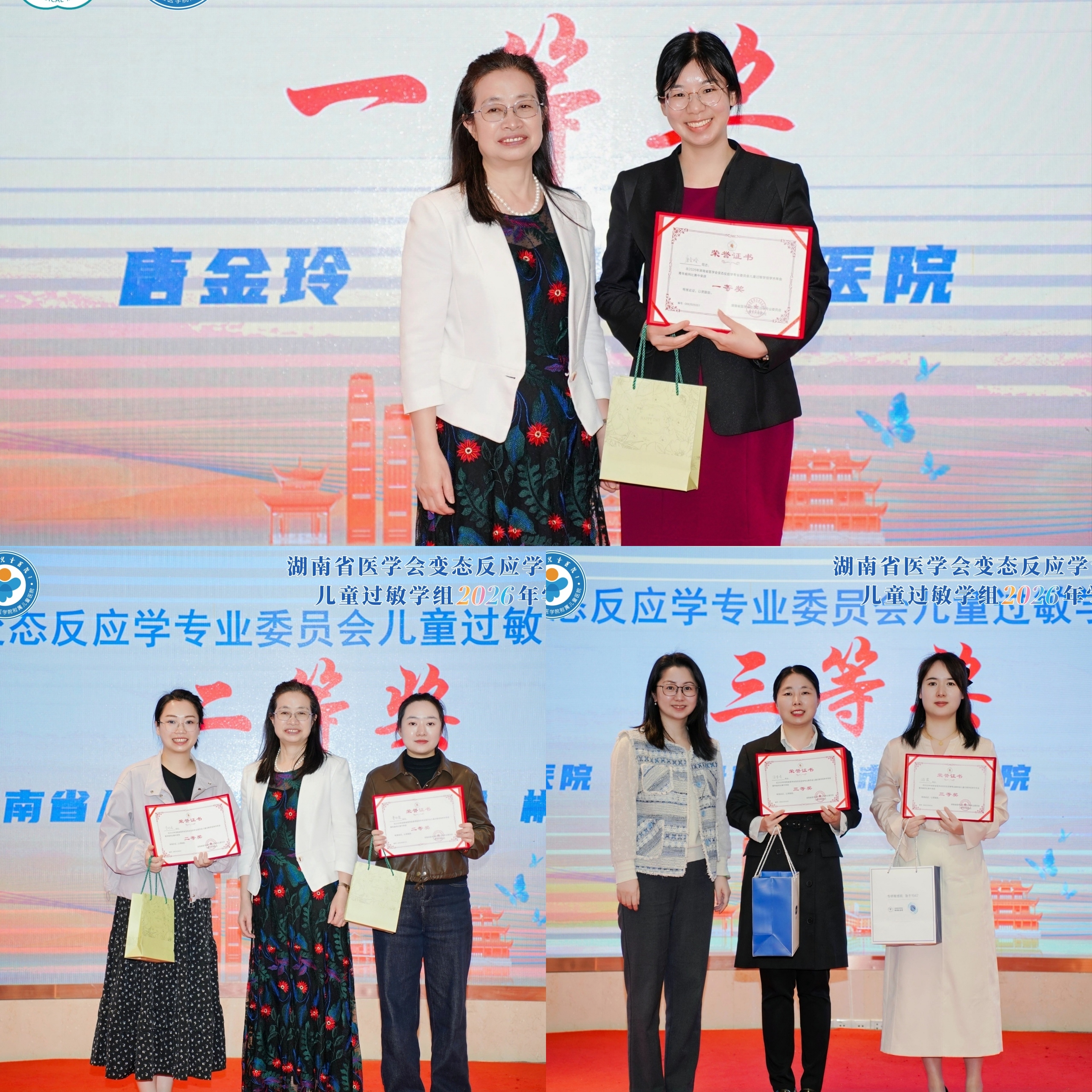 大会同期举办青年病例竞赛,全省多家医院青年医师同台竞技,围绕儿童过敏性疾病疑难典型病例展开交流展示,凭借清晰的诊疗思路、严谨的病情分析,展现出扎实的临床功底与良好的青年人才风貌。中南大学湘雅医院周亚欧教授、常德市第一人民医院朱建建教授、中南大学湘雅医院王风君教授担任评委,现场逐一精准点评、悉心专业指导,实现以赛促学、以学促用的良好效果,为全省儿童过敏领域青年医师搭建了优质成长平台。经过激烈角逐,我院唐金玲医师荣获竞赛一等奖,郴州市儿童医院曹林霞医师、我院李珂瑶医师荣获二等奖,常德市第一人民医院游霞医师、岳阳市中心医院徐倩倩医师、中南大学湘雅三医院叶茂宇医师荣获三等奖。