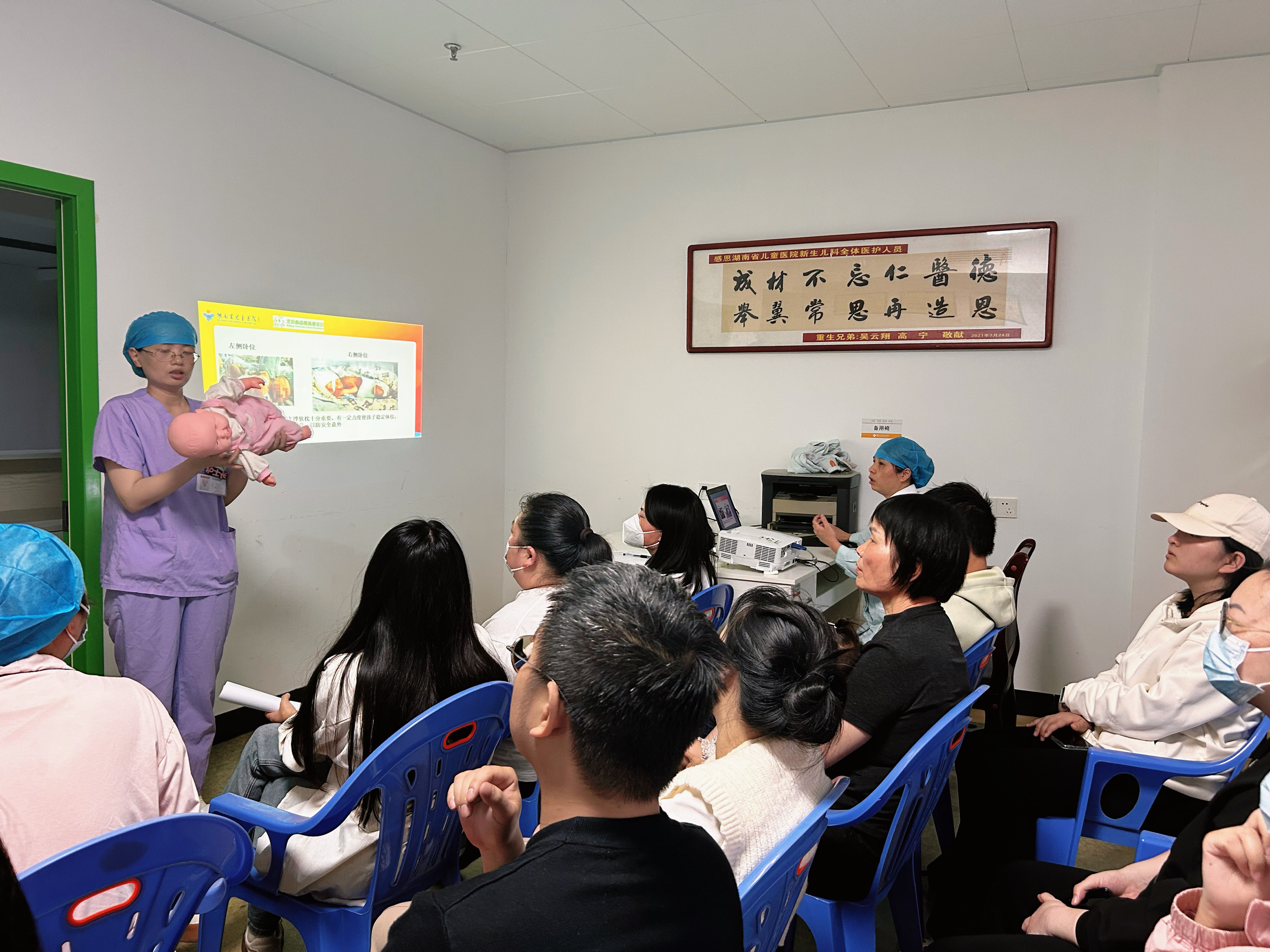 4月27日,湖南省儿童医院与北京春苗慈善基金会联合开展的早产儿活动项目(第二期)首场公益活动——早产宝宝居家管理圆满落幕。活动特邀请新生儿科一病区主管护师王芝兰主讲。凭借二十余年的专业护理经验,王老师用通俗易懂的语言,微现场20余名早产儿家长带来了一场实用、生动的育儿指导课。现场互动积极,气氛热烈,切实为新手爸妈搭建了专业的学习交流平台。
